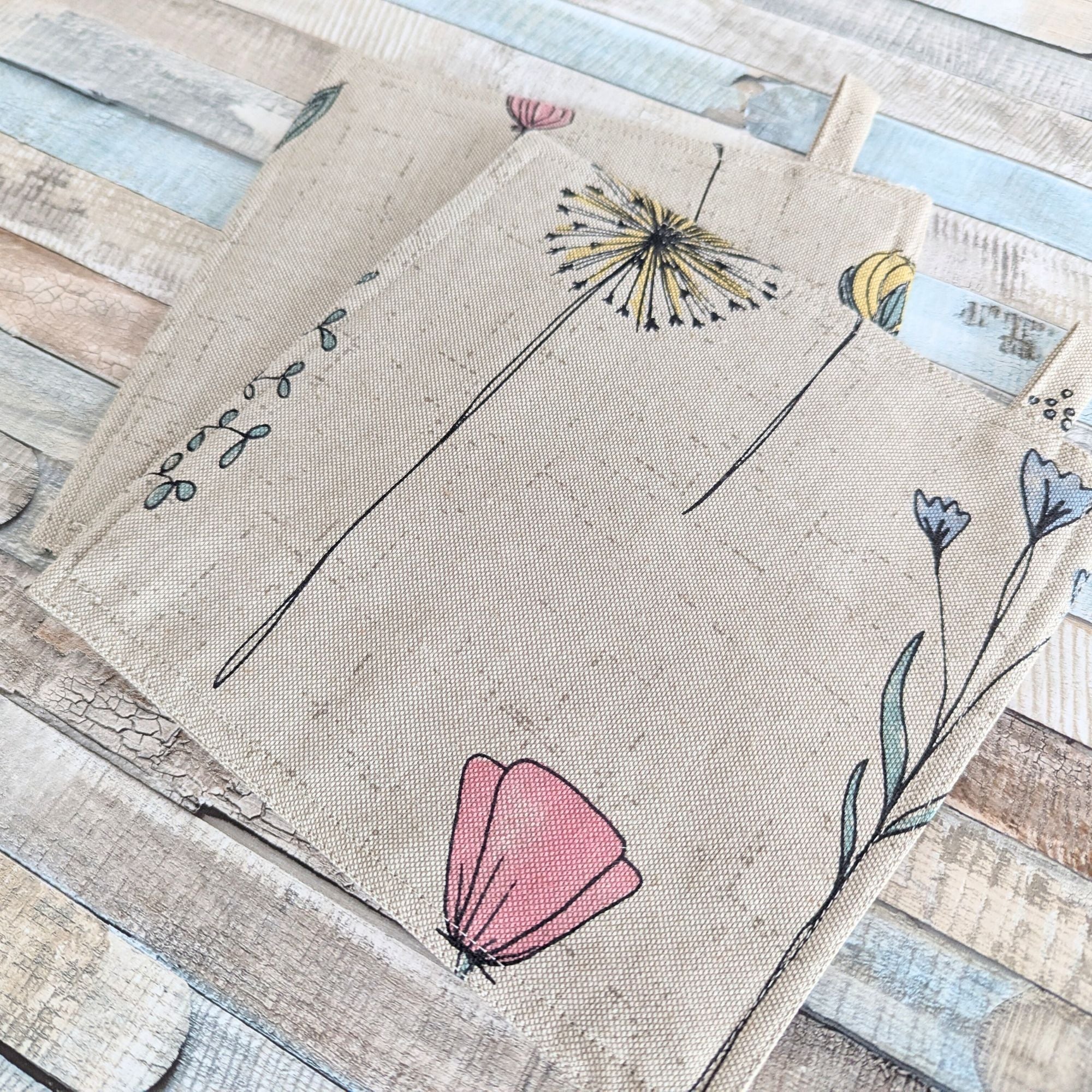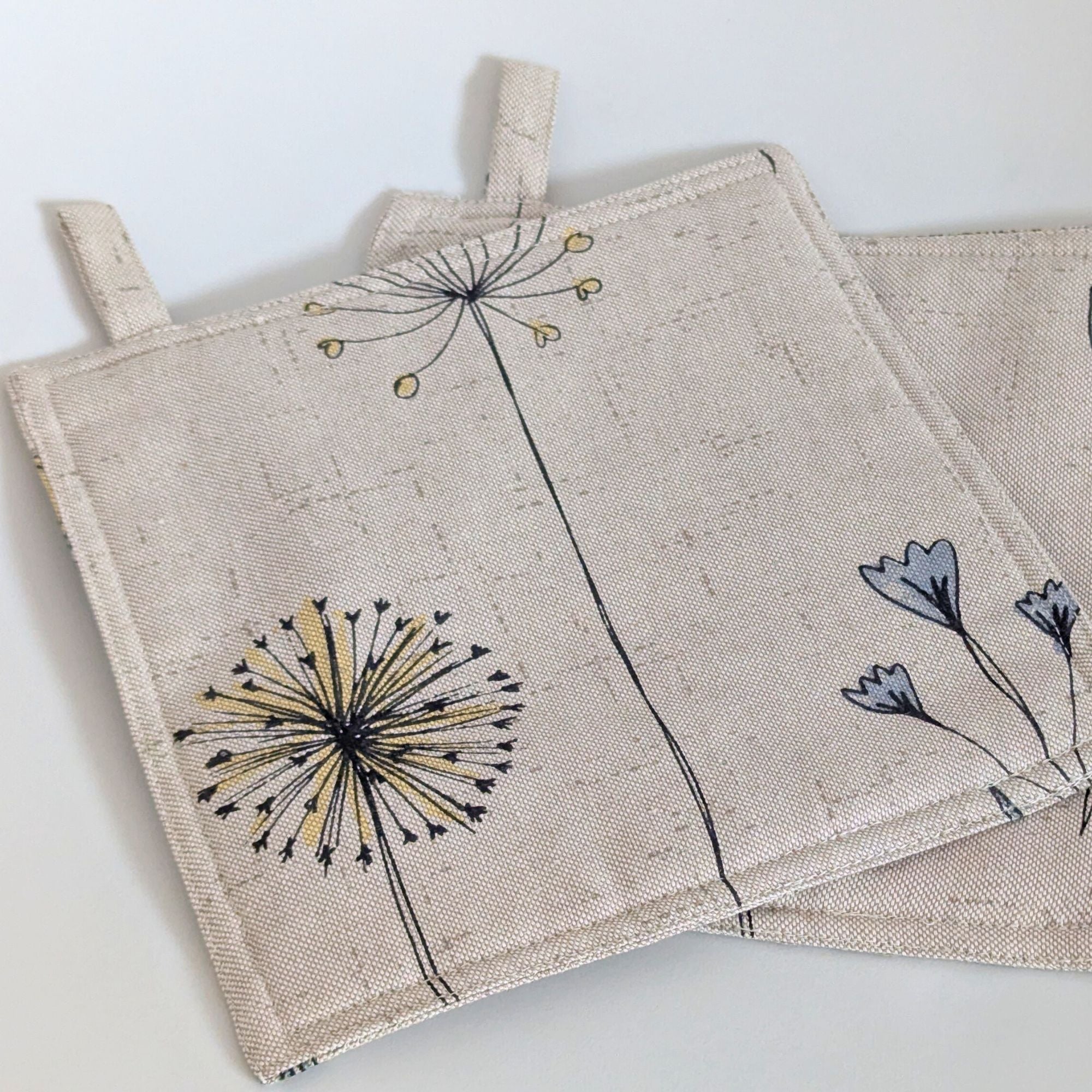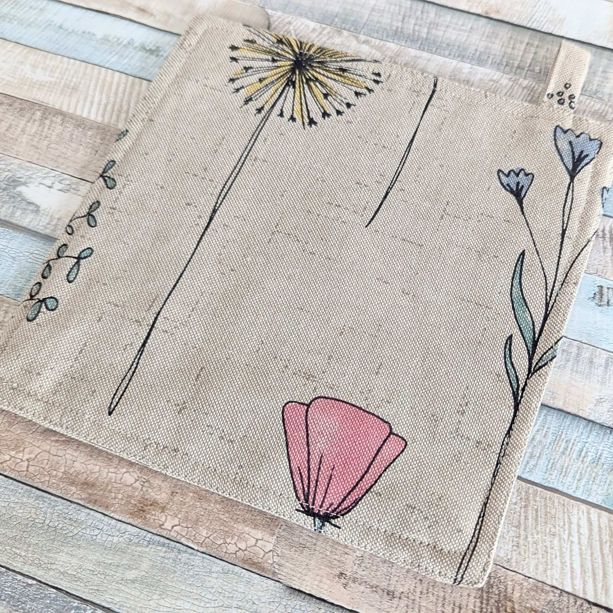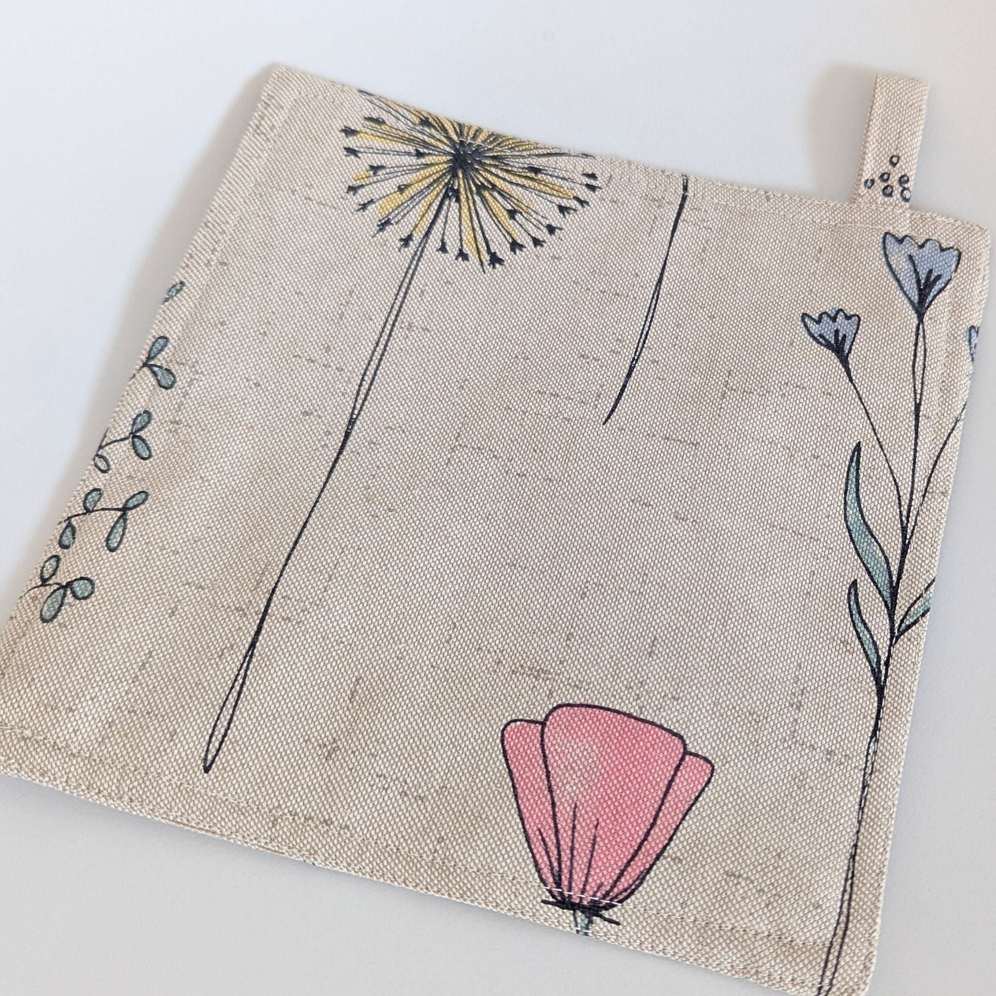 Bringen Sie das Blumenfeld auf Ihren Tisch :) Unsere Blumenuntersetzer und Topflappen im schönen Baumwoll-Leinenlook sind vielseitig einsetzbar. Die zarten Blumenmotive in sanften Farben auf beige-farbenem Hintergrund verleihen Ihrem Essbereich eine leichte und elegante Note.
