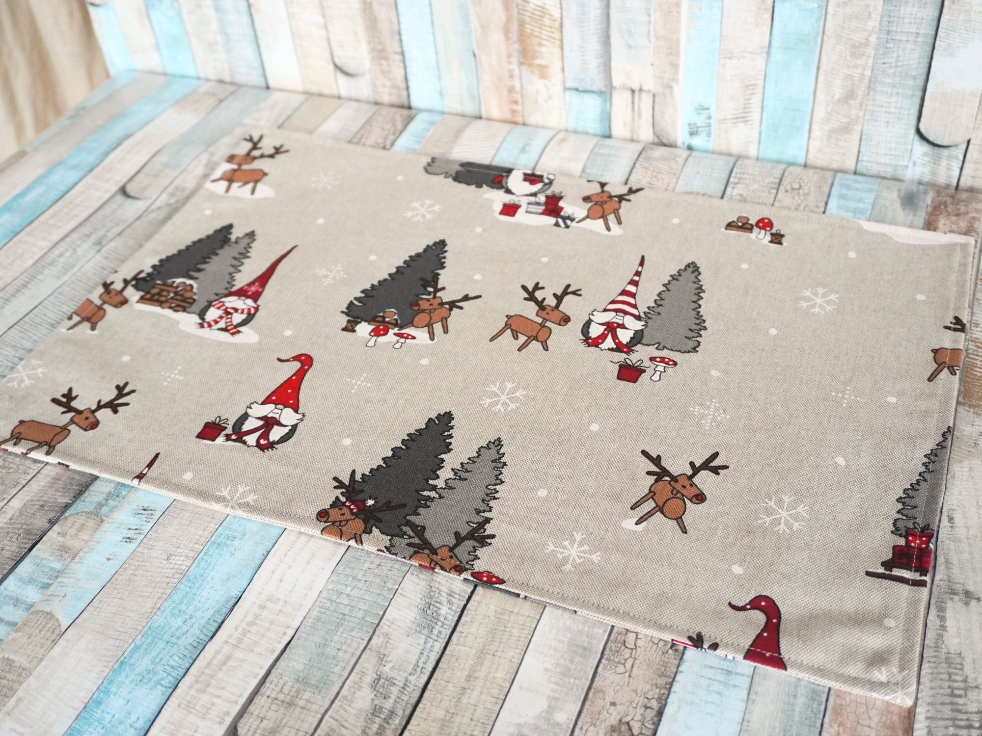 Handgefertigte Platzmatte, Platzdeckchen mit Wichtel und Rentieren - Perfekt für die festliche Dekoration
