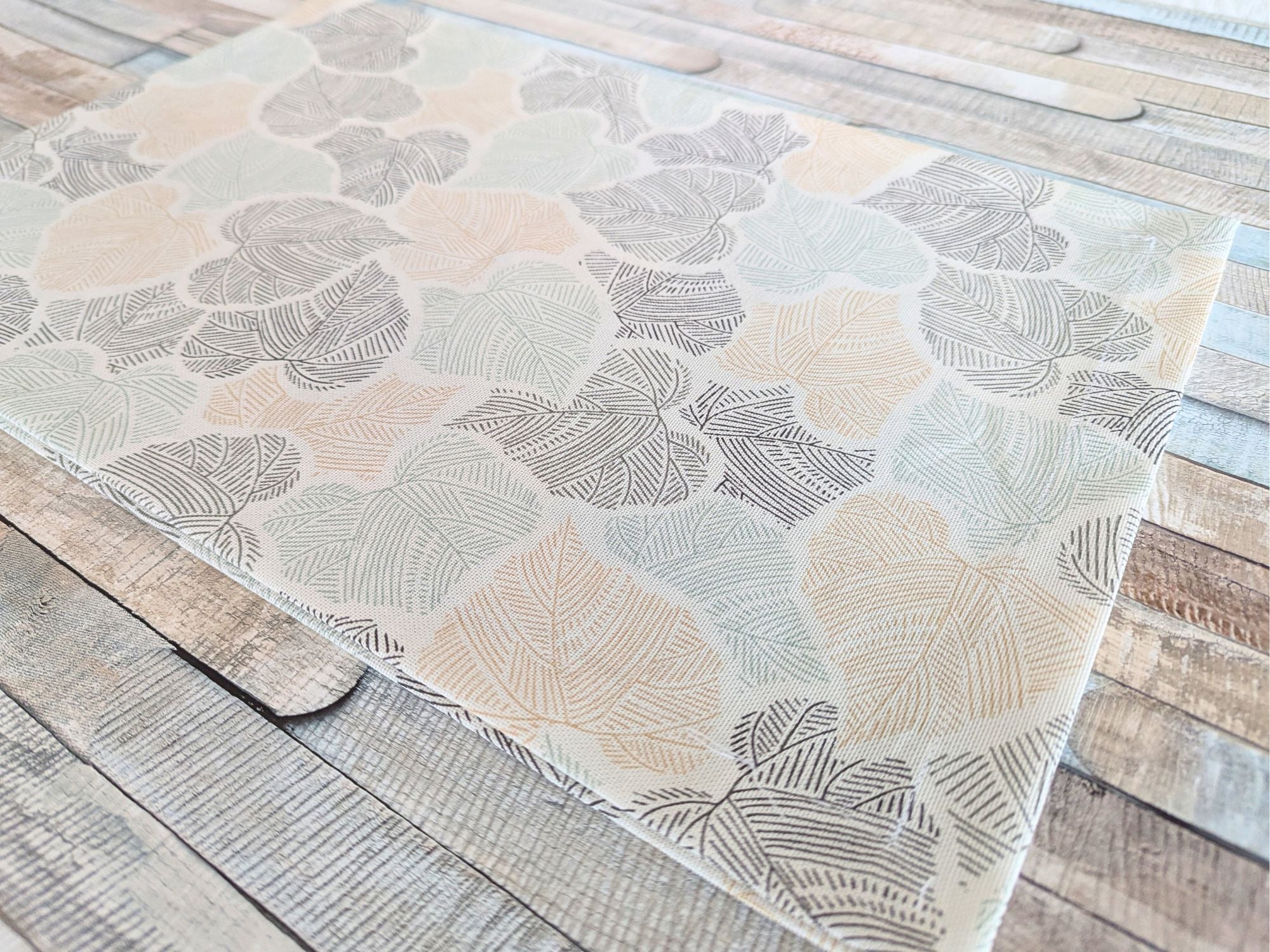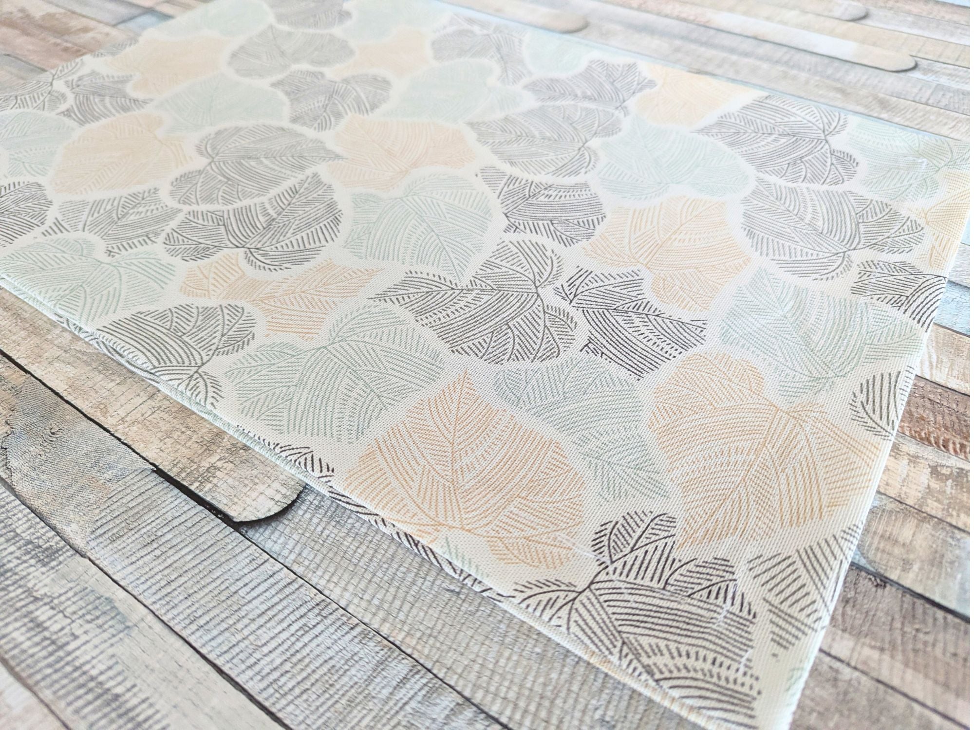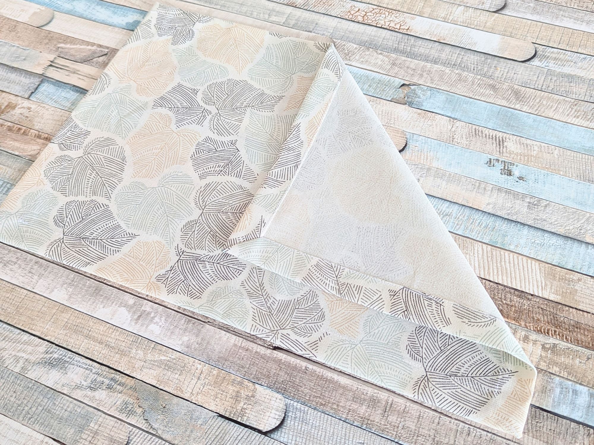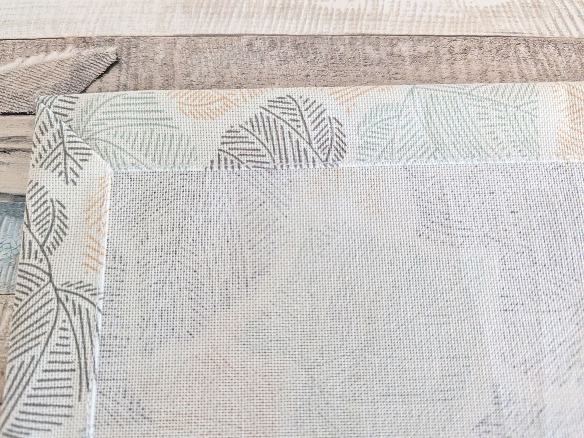 - Design: Leinenoptik mit Blätter-Motiv.