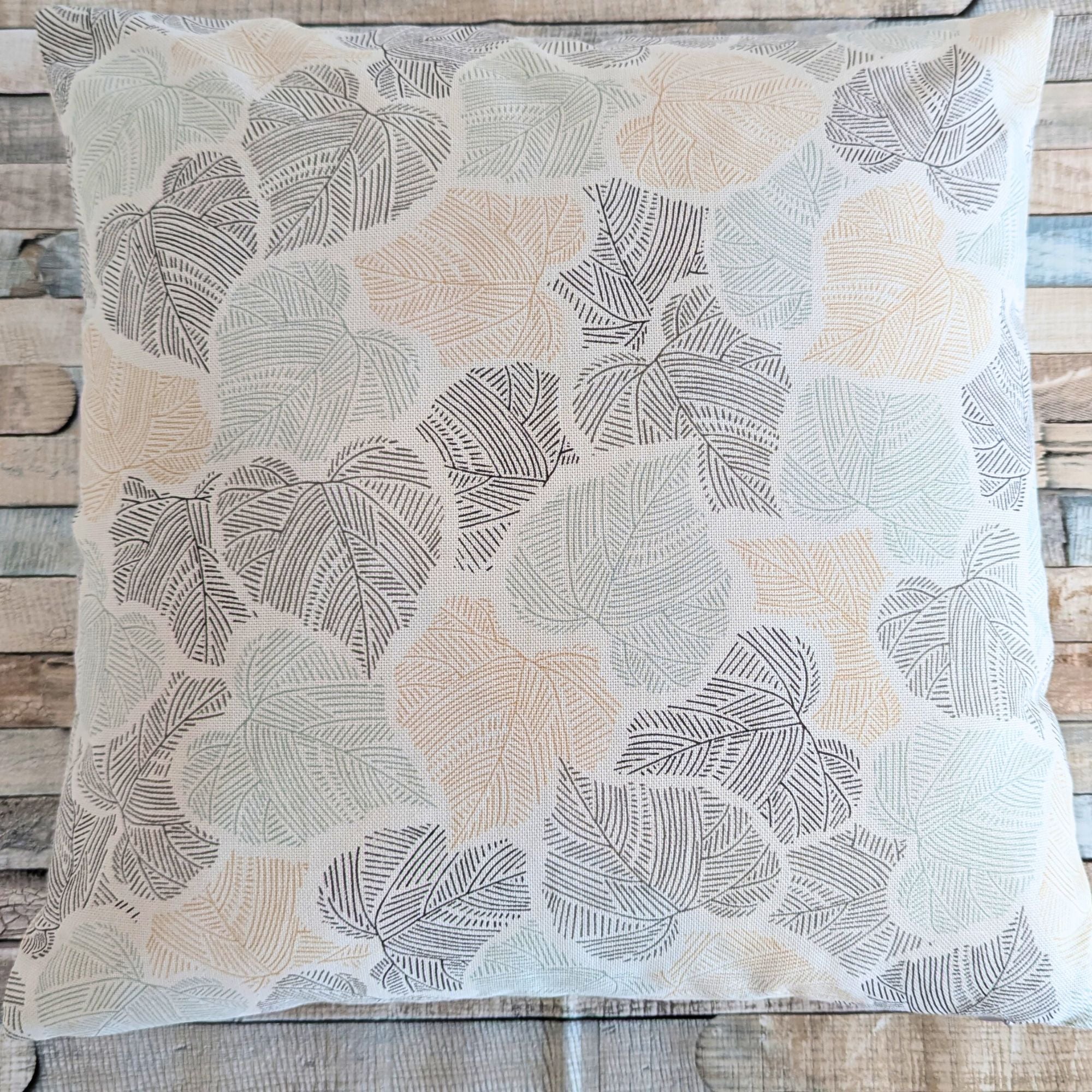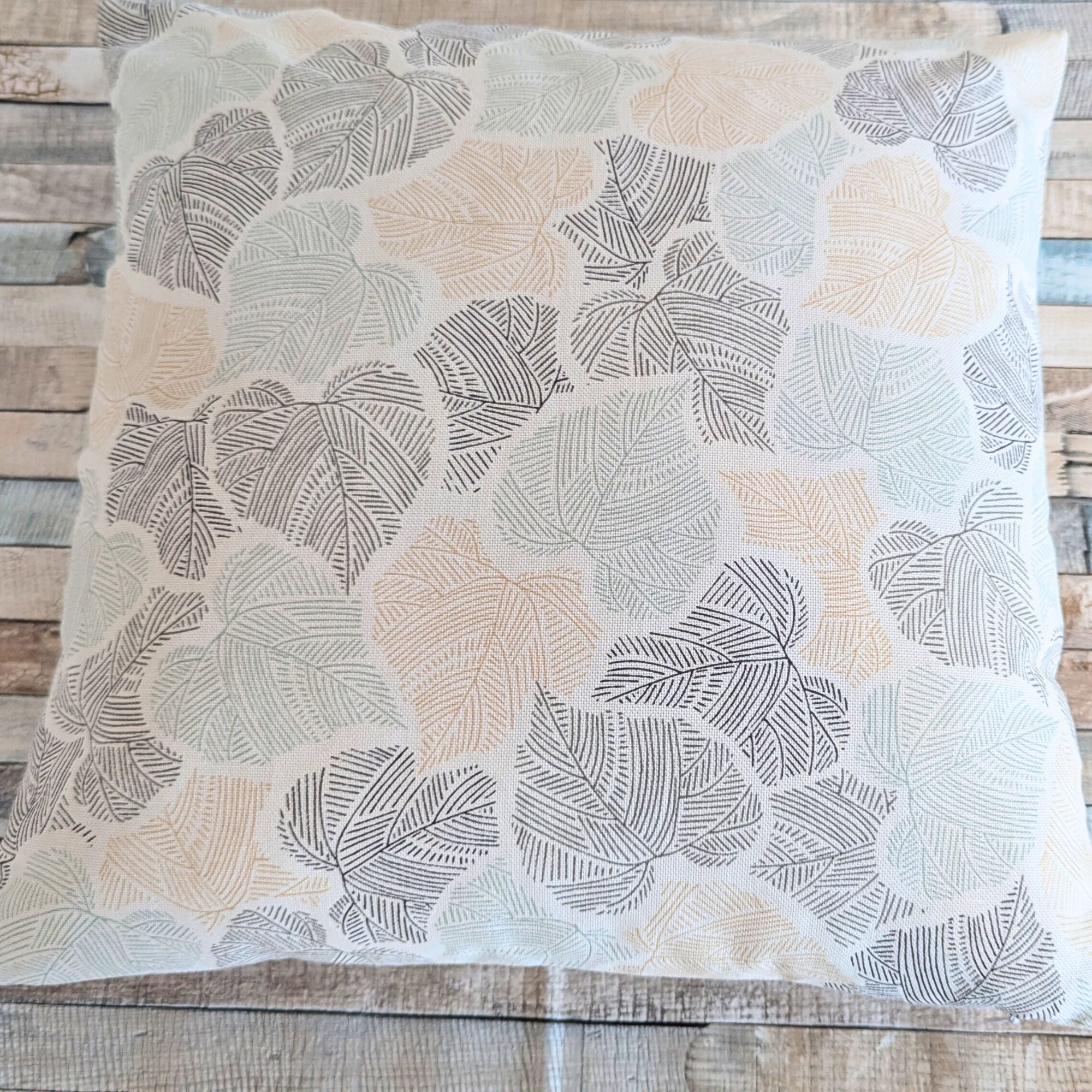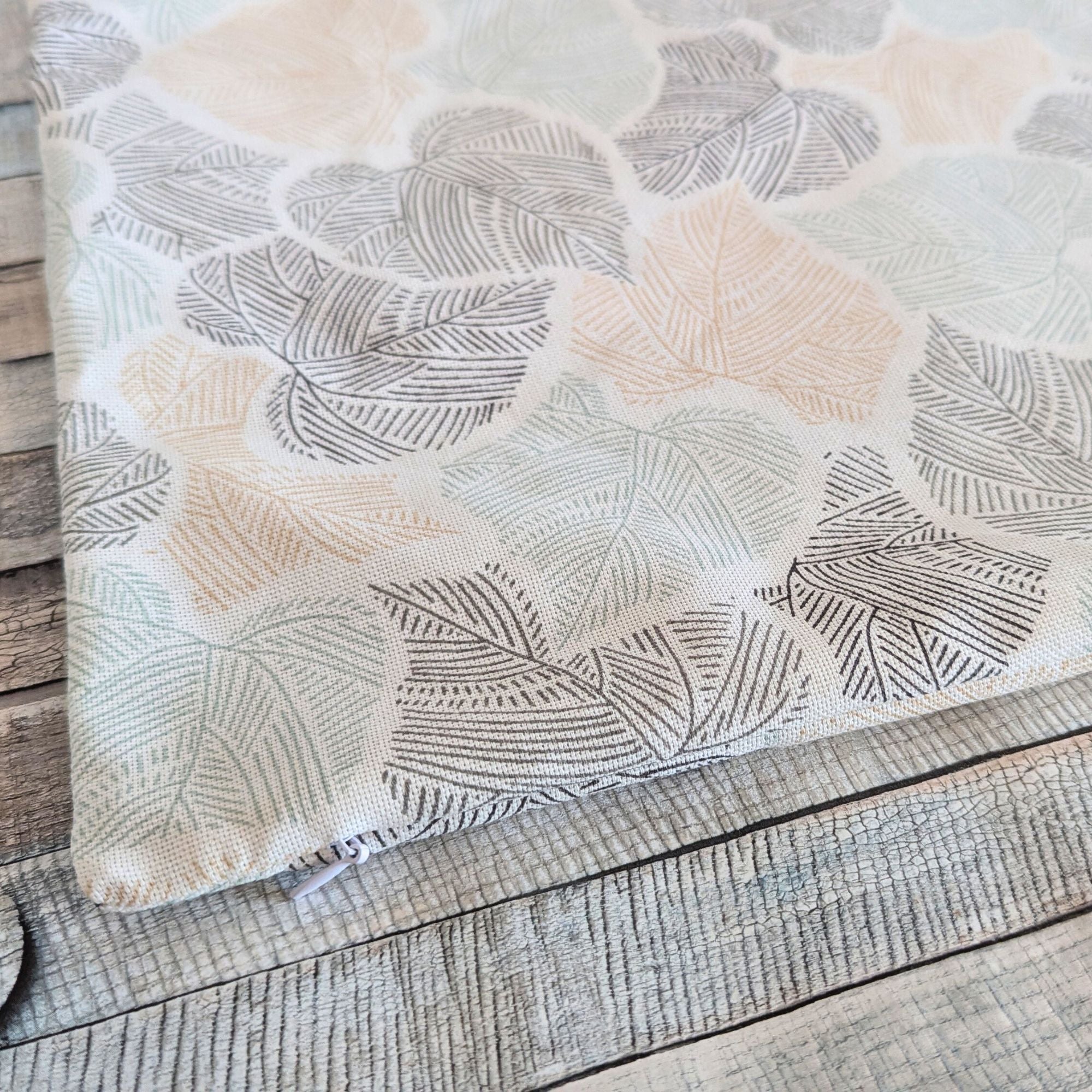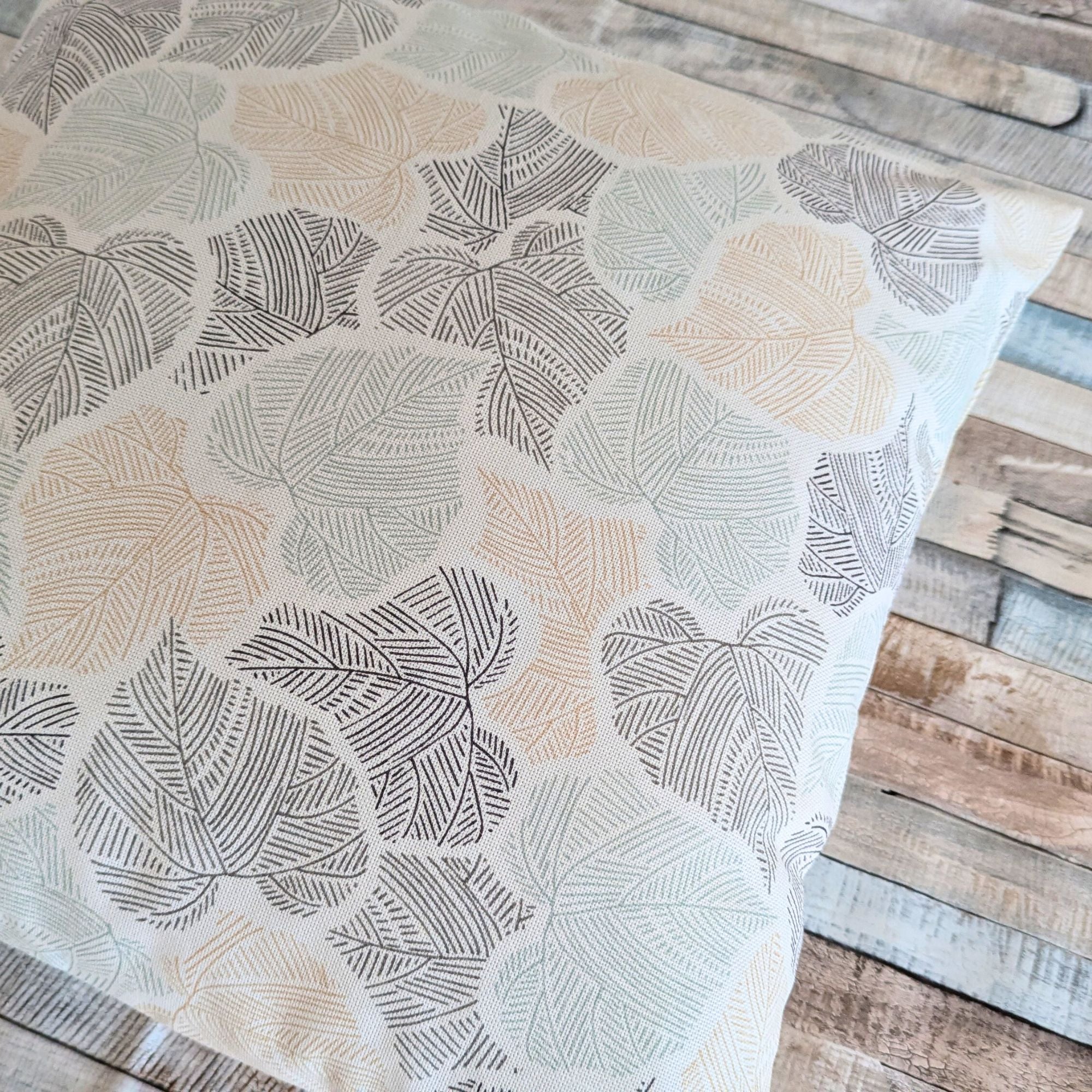 Handgefertigter Sofakissenbezug mit Blätter Design in warmen Herbstfarben