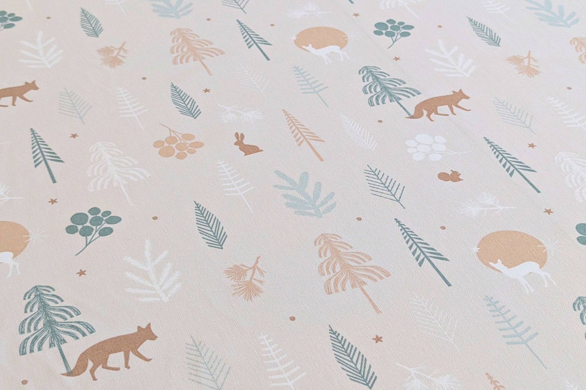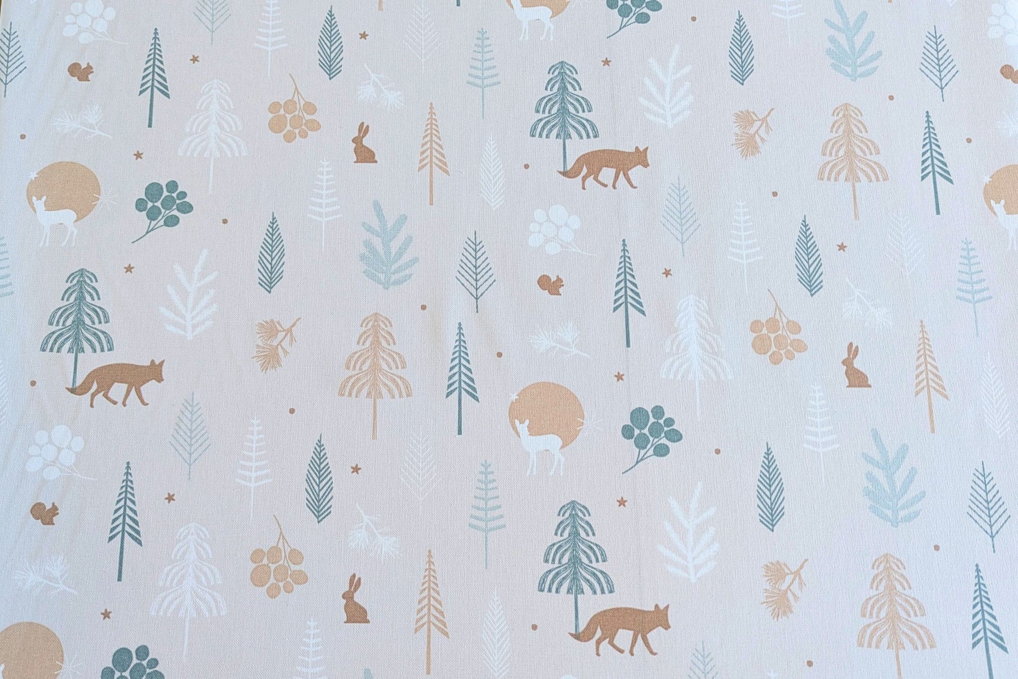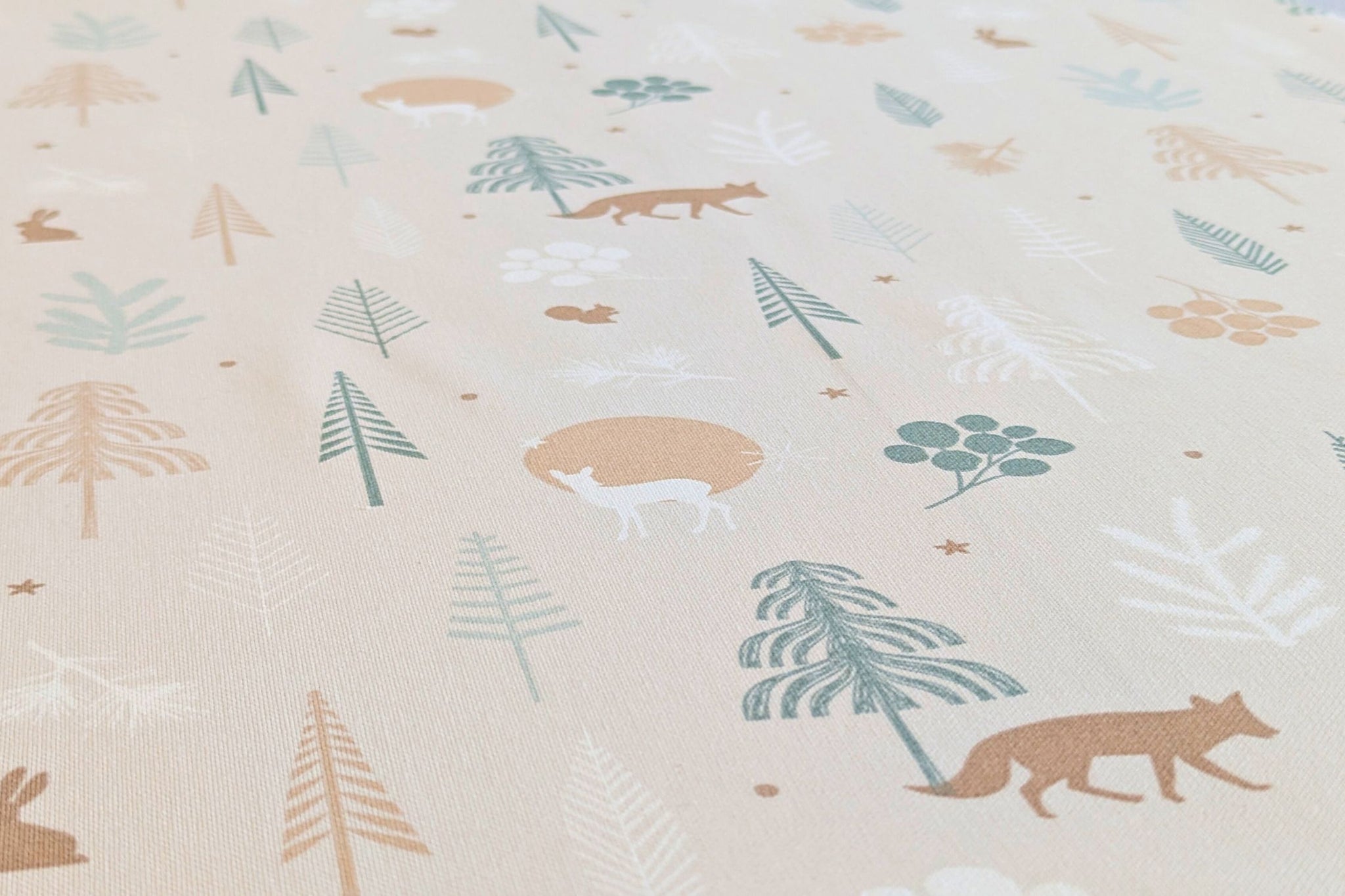 - Design: Leinenoptik mit Weihnachtsieren im kalten Wald