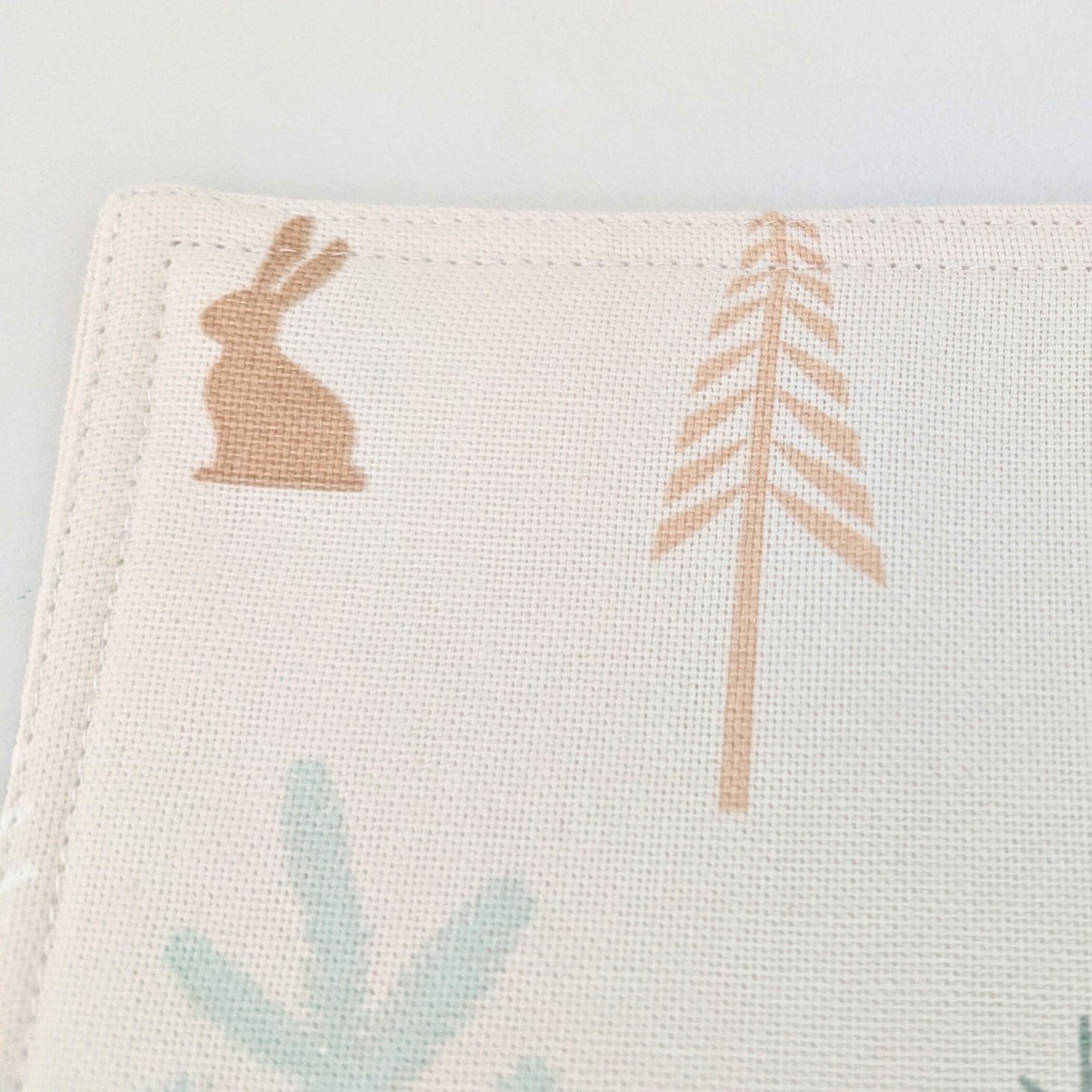 - Design: Leinenoptik mit Weihnachtstieren im kalten Wald
