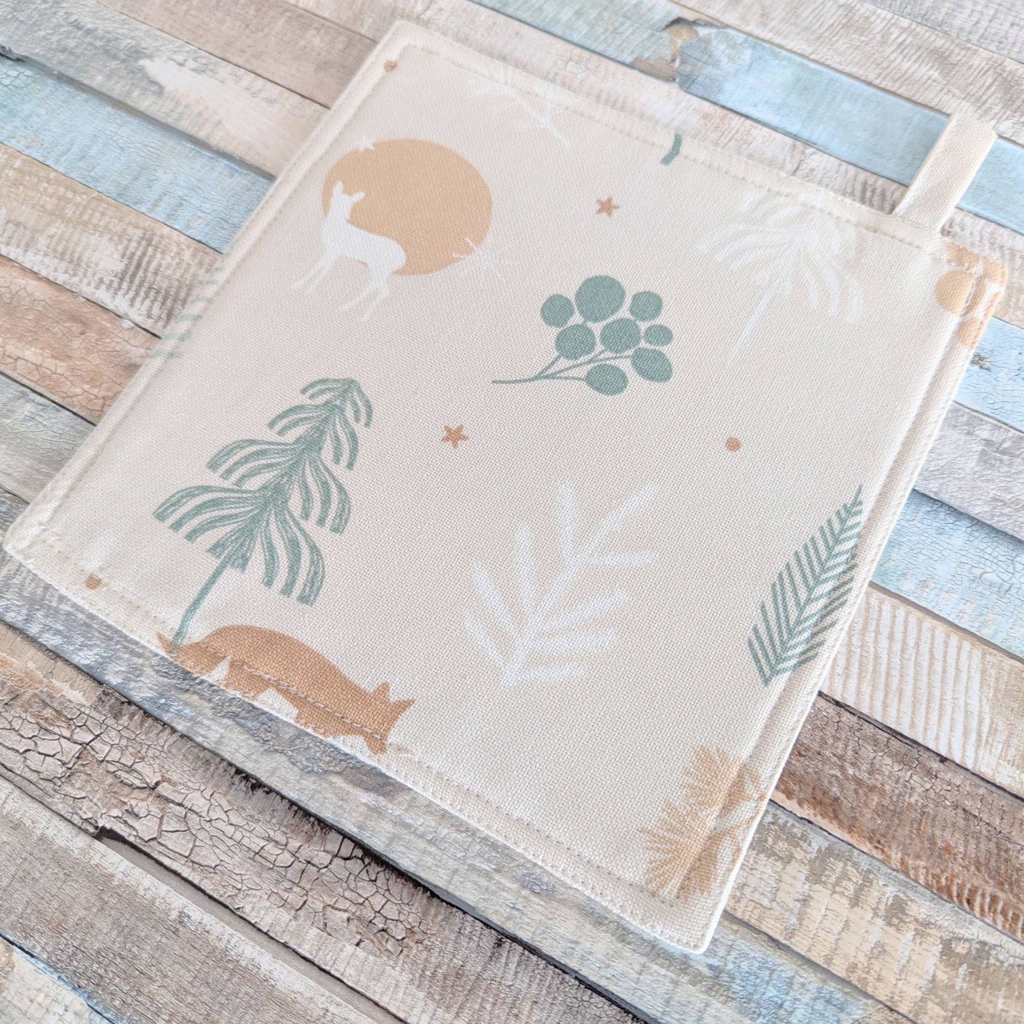 Bringen Sie winterliche Gemütlichkeit in Ihre Küche und Esszimmer. Unsere handgefertigten Weihnachts-Topflappen mit liebevollen Waldtier-Motiven verzaubern mit ihrem natürlichen Look im Baumwoll-Leinenstil. Die Kombination aus praktischem Hitzeschutz und festlichem Design macht sie zu einem stilvollen Helfer in der Weihnachtszeit – perfekt zum Kochen, Backen oder als dekoratives Highlight auf dem Tisch.